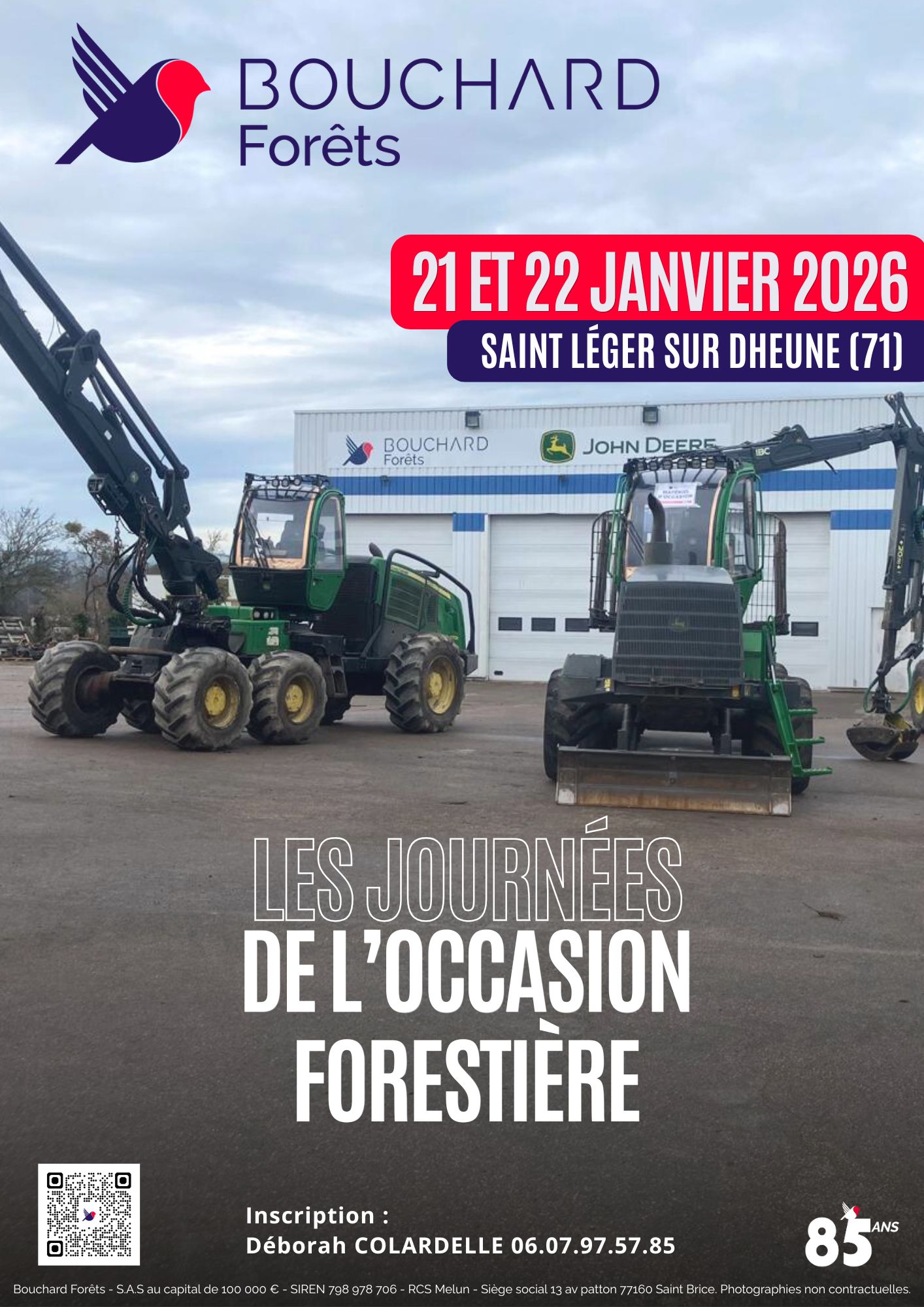 Bouchard Forêt vous invite à un événement exceptionnel : les Journées de l’Occasion Forestière, qui se tiendront les 21 et 22 janvier 2026 à Saint-Léger, au cœur de la Bourgogne. Deux jours uniques pour découvrir, tester et investir dans du matériel forestier d’occasion sélectionné pour vous !