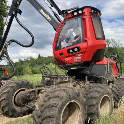 Harvester: Komatsu 931XC Moteur : AGCO POWER, 6 cylindres, Stage V, Tier 4F et Stage II : 190 kW ; Système de contrôle Maxi Xplorer, PC X40 ; Transmission 8 roues motrices ; Amortissement de la flèche ; Tête d'abatteuse C144 Système de marquage couleur ; Siège BE-GE 3000 ; Préchauffeur (Webasto); Stores pare-soleil; Radio; Caméra de visualisation : arrière ; Feux de travail : LED ; GPS; Hydr. pompe de remplissage d'huile ET GASOIL; Lubrification centrale ; Protection de capot moteur ;